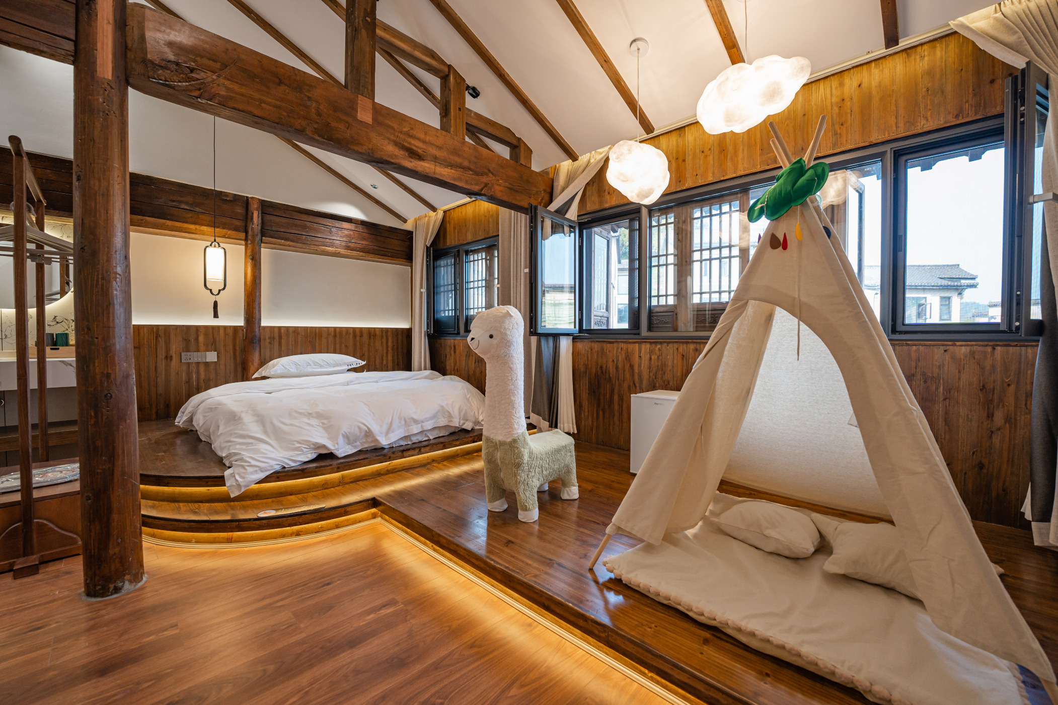 婺源弦高城民宿,坐落于中国最美乡村——江西婺源的弦高城(西湖凼历史文化街区)核心区域西培里,是由婺源弦高城景区倾力打造的一处沉浸式徽州文化旅居目的地。这片民宿集羣由14栋精心修复与再造的明清风格古建筑组成,每一栋楼、每一间房都承载着不同的历史故事与建筑美学。漫步其间,飞檐翘角的马头墙在蓝天下勾勒出优美的天际线,精致的木雕、砖雕、石雕点缀于窗棂廊柱之间,堪称研究徽州历史与建筑艺术的“活态样本”。核心特色:原汁古韵,修旧如旧:民宿严格遵循徽派建筑传统规制,在保留原有街巷肌理与民居风貌的基础上进行修复与活化,让客人真正住进历经沧桑的明清古宅,触摸历史的温度。一院一景,风格迥异:14栋建筑并非千篇一律,而是各具特色。有的院落曲径通幽,藏有天井连片的精美格局;有的则推窗即景,可俯瞰老街全景或远眺星江河风光,确保每次入住都有独特的体验。沉浸式文化体验:民宿位于弦高城内,客人不仅能享受静谧的住宿环境,更能无缝融入街区的千年烟火。白天可漫步青石板路,体验古法酿酒、油纸伞制作等非遗手作;夜晚则可欣赏鱼灯巡游、民乐演奏等精彩演艺,感受从“观光客”到“临时村民”的身份转变。配套完善,便捷舒适:民宿羣配套有接待服务中心、休闲广场及大型生态停车场,在保留古韵的同时,客房内部均配备现代舒适的设施,确保旅居的便利与惬意。婺源弦高城西培里民宿,不仅仅是一个歇脚之地,更是一扇通往徽州千年文化的窗口。在这里,晨听鸟鸣,夜观星空,于粉墙黛瓦间,寻得一份久违的宁静与诗意,真正实现“住进风景里”的田园梦想。